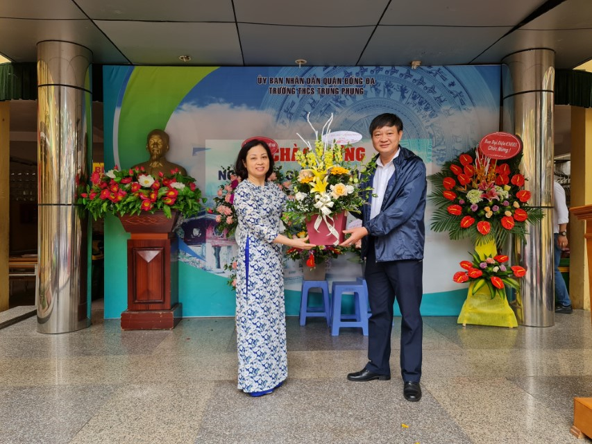 Trong buổi lễ, đại diện Đảng ủy, UBND Phường Trung Phụng, phường Phương Liên cùng với các đơn vị kết nghĩa, đơn vị sở tại và cha mẹ học sinh đã đến chung vui, tặng hoa chúc mừng nhà trường cùng toàn thể các thầy cô.