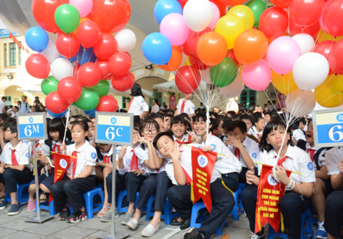 Học sinh trường THCS Trưng Vương trong lễ khai giảng tháng 9/2017. Ảnh: Hoàng Thùy