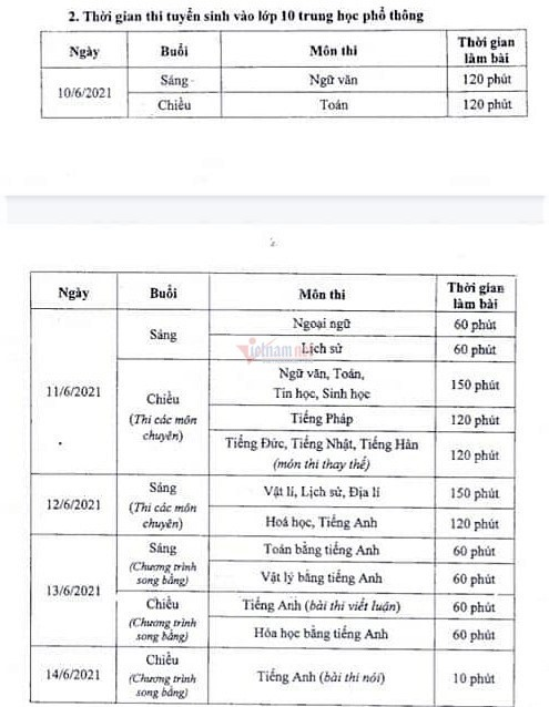 Lịch thi vào lớp 10 THPT công lập ở Hà Nội năm nay như sau: