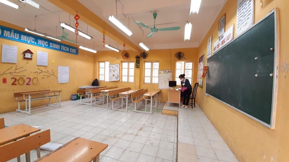 sinh, lau dọn, khử khuẩn sạch sẽ phòng học, bàn ghế, phòng máy tính, nhà vệ